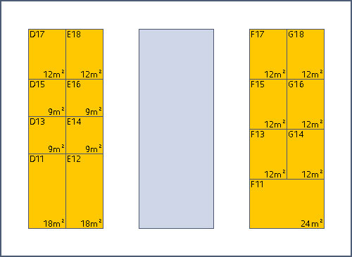 The booths in yellow are available. The ones in red are booked, in orange reservations.